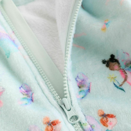 A dreamy and cozy all-in-one for babies aged 3-6 months, made from soft fleece and featuring a magical all-over print of fairies and butterflies. The soft pastel colours and full zip make this the perfect choice for snug and gentle sleepwear.