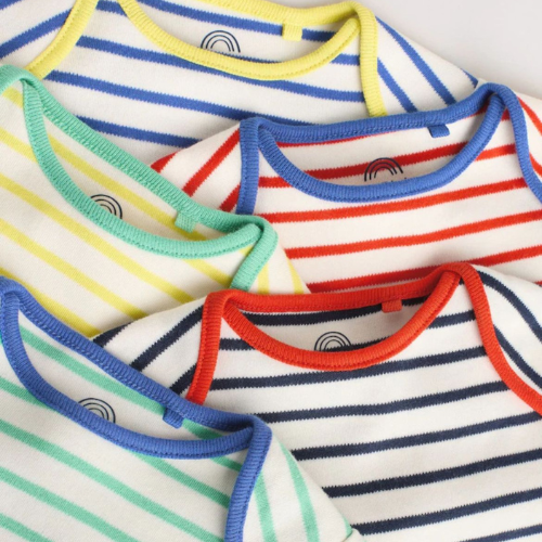 An essential 5-pack of colorful, half-sleeve bodysuits featuring vibrant stripes and contrast trim. Designed for maximum comfort and easy layering. A wardrobe necessity for babies 0-3 Months.