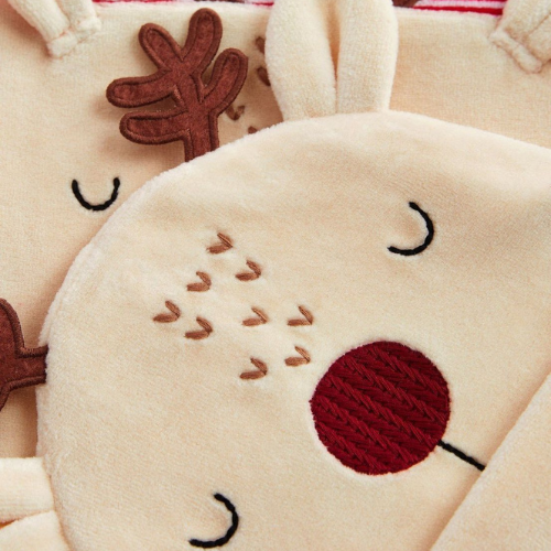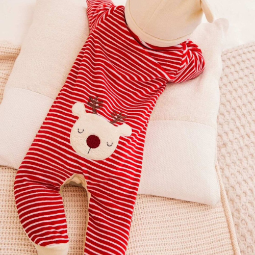 Matching Accessory: The outfit includes a coordinating reindeer hat (with small antlers or ears) to ensure the baby’s head stays warm and the look is perfectly styled.