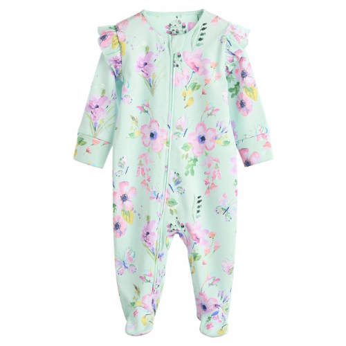 A dream-like 3-pack of footie rompers featuring soft pastel florals, butterflies, and gentle ruffle details. Designed for ultimate comfort for (newborns) up to 1 Month.