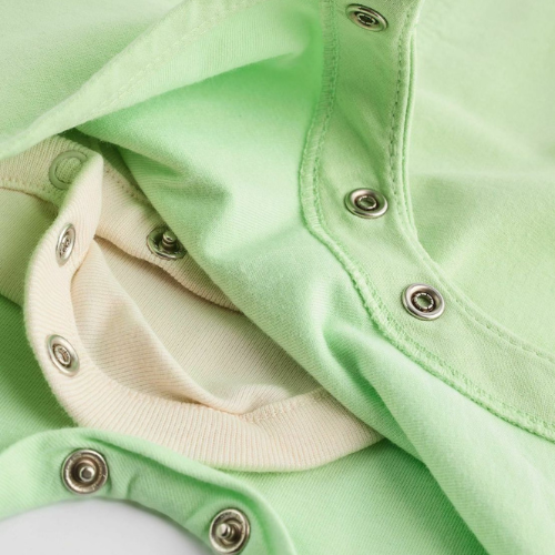 A refreshing 2-piece ensemble featuring a soft mint green dungaree with classic button details and a coordinating cream short-sleeved bodysuit. Perfect for stylish daytime wear in size 3-6 Months.