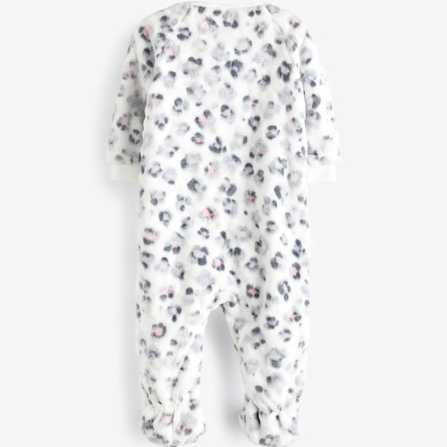 Super Soft White Leopard Print Fleece Footed Sleepsuit