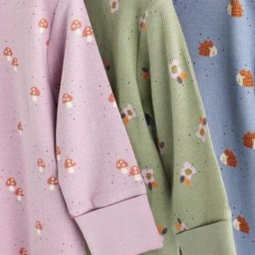 A cozy and charming 3-pack of long-sleeved, ribbed jumpsuits featuring whimsical woodland prints (Mushrooms and Foxes) on soft pink, green, and blue backgrounds. Easy front-zip access for Newborn comfort.